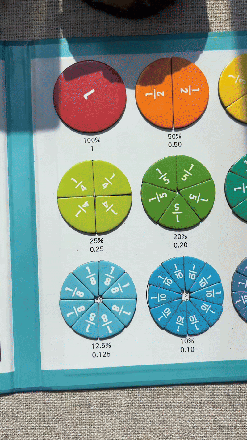 Forget confusing equations and abstract numbers. This magnetic puzzle transforms fractions into tangible colors and shapes your child can touch, move, and instantly understand. Watch the lightbulb turn on as they intuitively master equivalent fractions, decimals, and percentages, making math fun, visual, and brilliantly simple. Learning this critical skill has never been this playful.